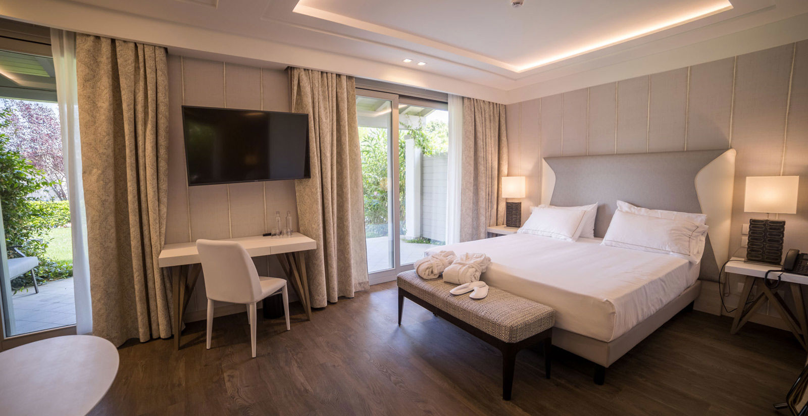 Le camere e suite di Splendido Bay Luxury Spa Resort Hotel sono progettate per offrire il massimo del comfort e del lusso. Ogni stanza è arredata con raffinatezza e dotata di un balcone privato che permette di ammirare spettacolari viste sul Lago di Garda. Che tu scelga la Camera Classic, la Camera Superior, la Junior Suite Park, la Junior Suite Deluxe, la Suite Parco Family, la Suite Executive, la Suite Panoramic o la Bay Suite, ogni soggiorno sarà un'esperienza unica e indimenticabile. Lasciati coccolare dai dettagli di lusso e dall'atmosfera accogliente che ti farà sentire come a casa.